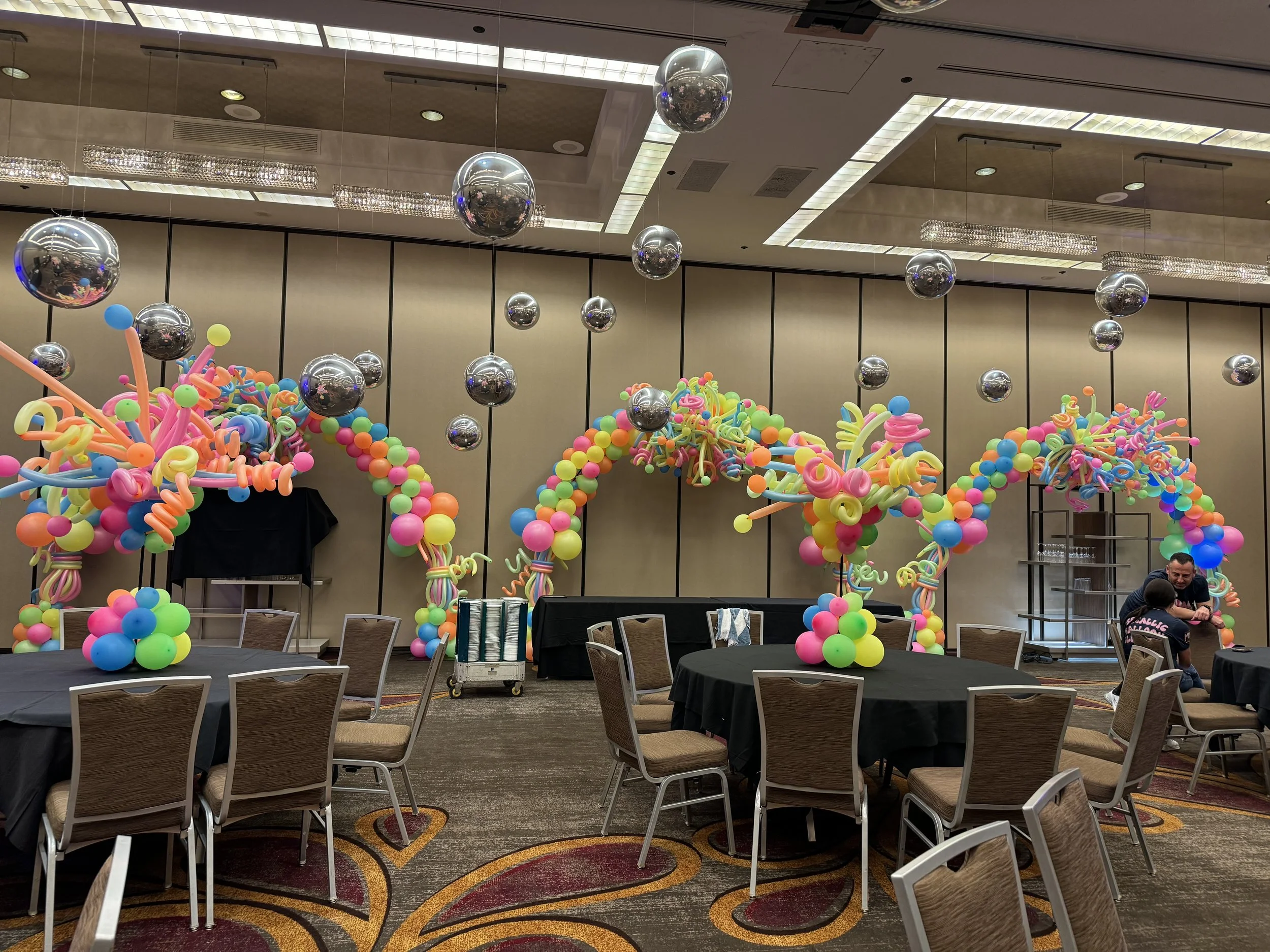 Transform any space into a wonderland with our bespoke balloon decorations. Whether it's a corporate event or a birthday bash, our creative designs and meticulous attention to detail ensure a magical atmosphere that captivates. Book Your free consultation as we discuss which combination of our Balloon garlands, backdrop rentals, balloon arches, centerpieces, columns, bouquets, helium balloons, ceiling decor and more is right for you event to create just the right about of magical wow factor and celebration to your next event!
